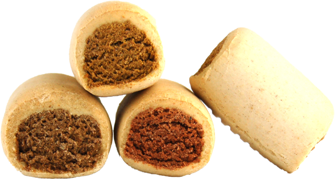 Die Kekse enthalten echtes Rindfleisch, Fisch, Huhn- und Schweinefleisch. Sie besitzen ein besonderes ausgewogenes Verhältnis aus Proteinen, Fetten und Vitaminen bei einem herausragenden Geschmack und guter Bekömmlichkeit.