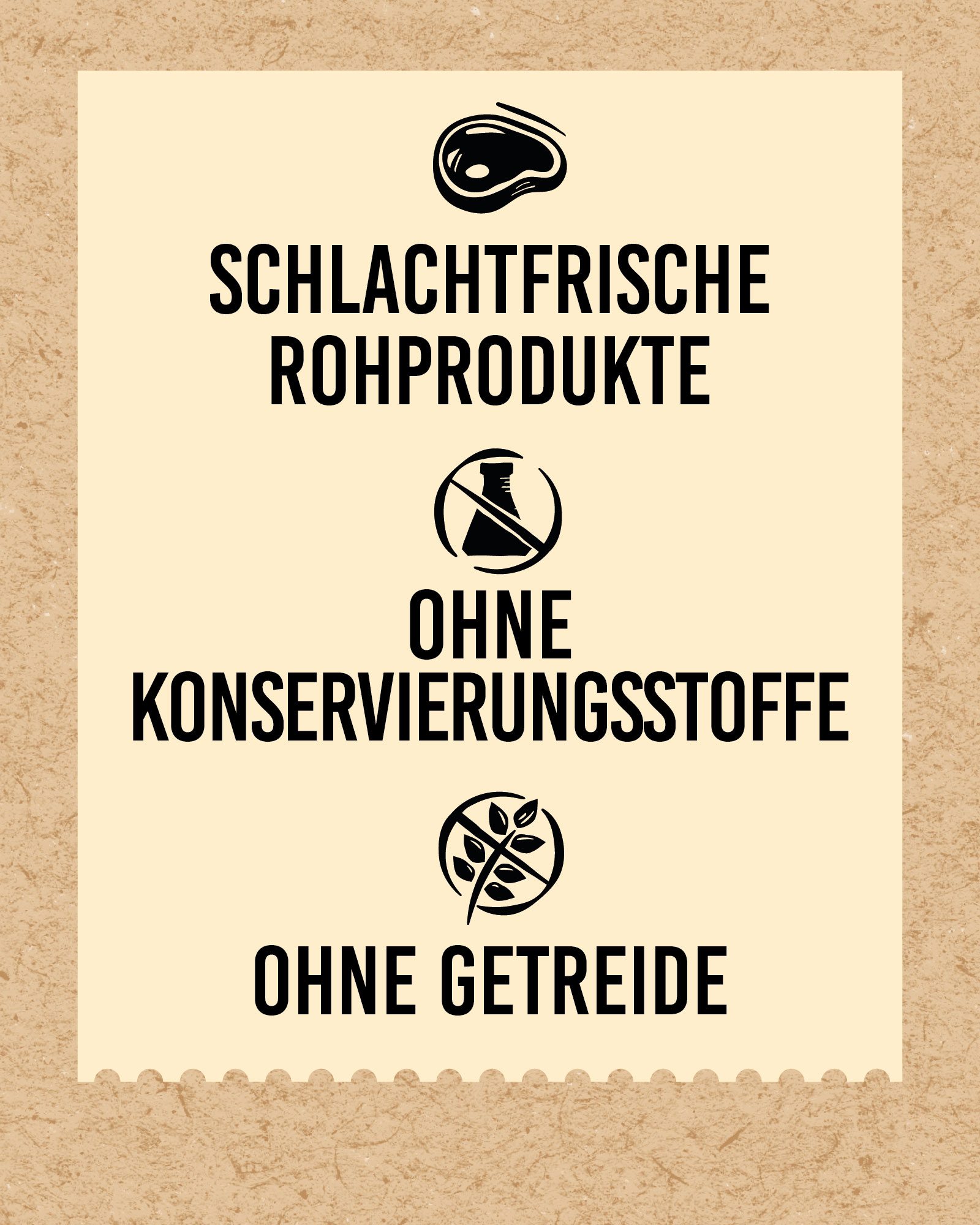 Lamm PUR wird aus ausgesuchtem Lamm hergestellt. Der Inhalt ist ohne Konservierungsstoffe und schonend zubereitet.