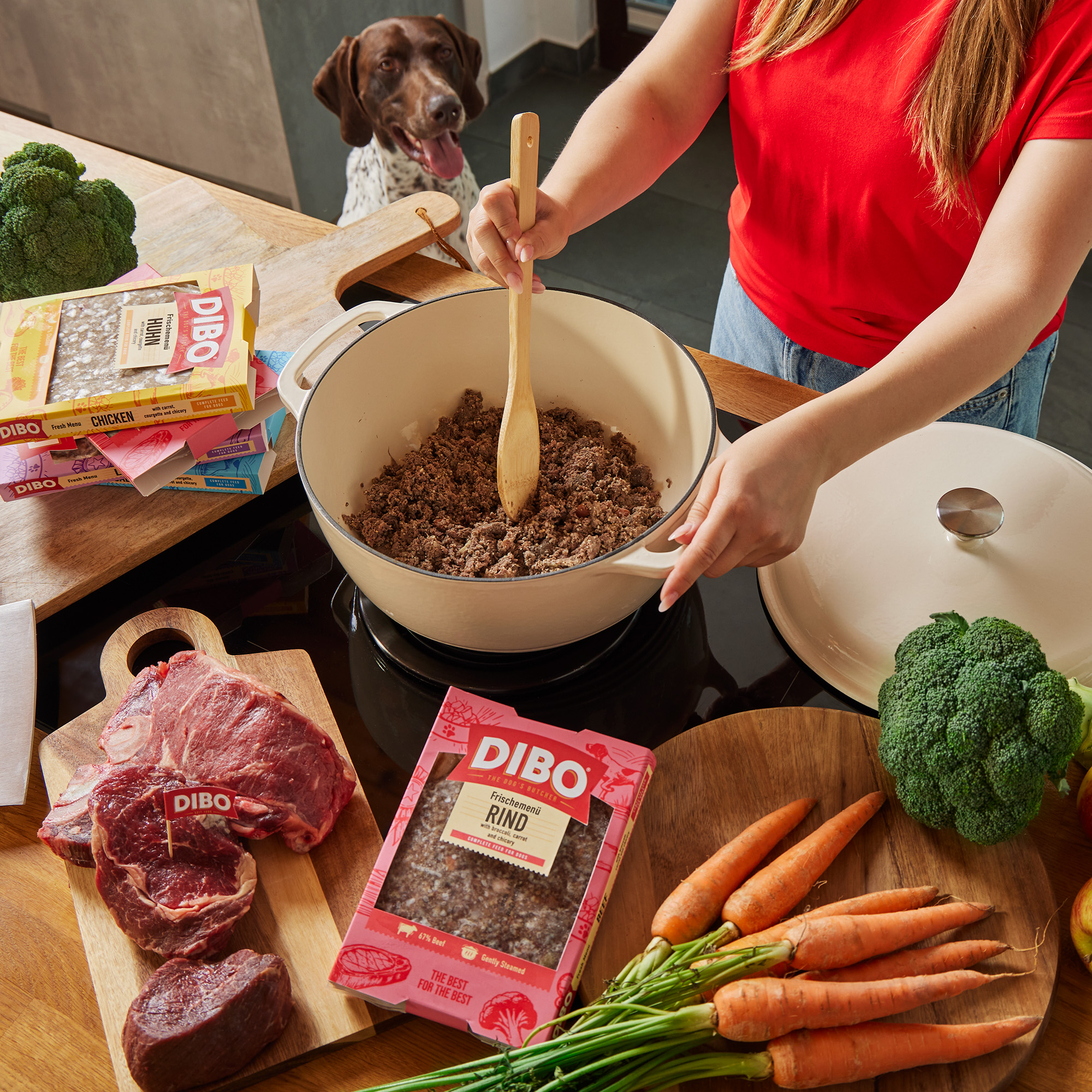Entscheiden Sie sich für die Frische und die Nährstoffdichte des DIBO Frischemenü Lachs.