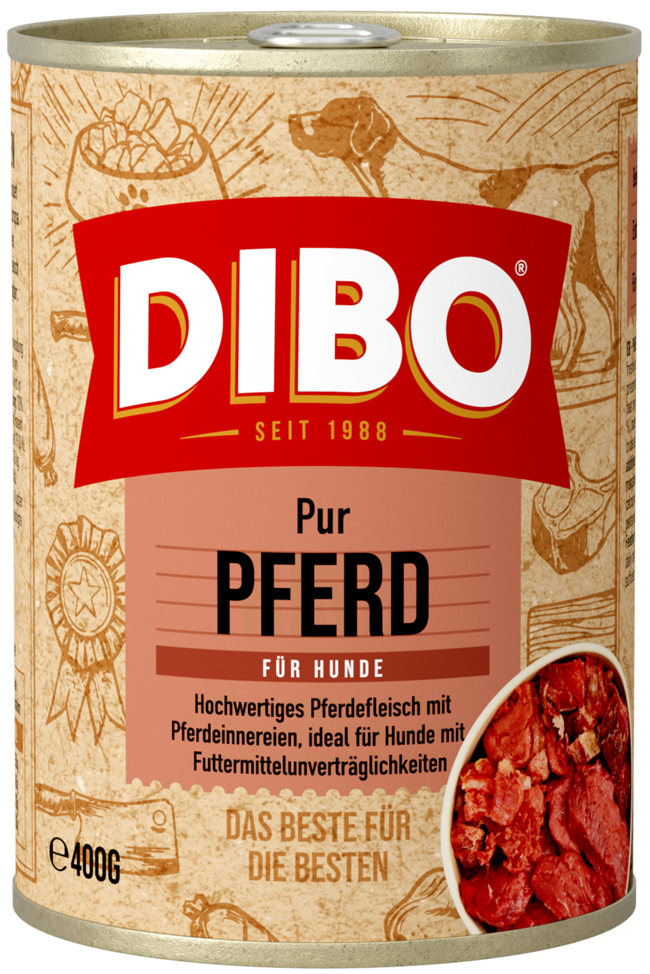 Mit seinem köstlichen Geschmack ist das DIBO Nassfutter Pur Pferd ein abwechslungsreicher Genuss für ihren Hund und gut für seine Verdauung.