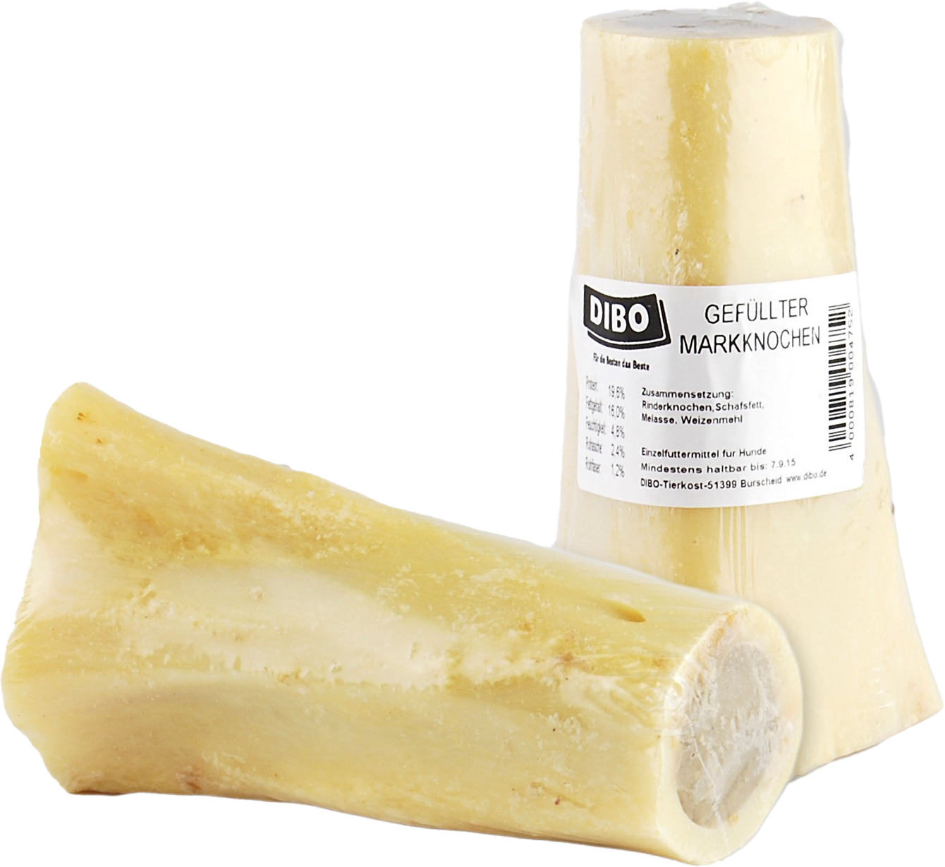Markknochen stammen aus den Röhrenknochen vom Rind und beinhalten eigentlich das Knochenmark, welches wertvolle Mineralstoffe enthält. Den DIBO Markknochen können Frauchen oder Herrchen ganz ohne schlechtes Gewissen als Belohnung oder Kausnack zwischendurch reichen. Denn der Knochen enthält nur natürliche Inhaltsstoffe, ohne künstliche Zusätze.