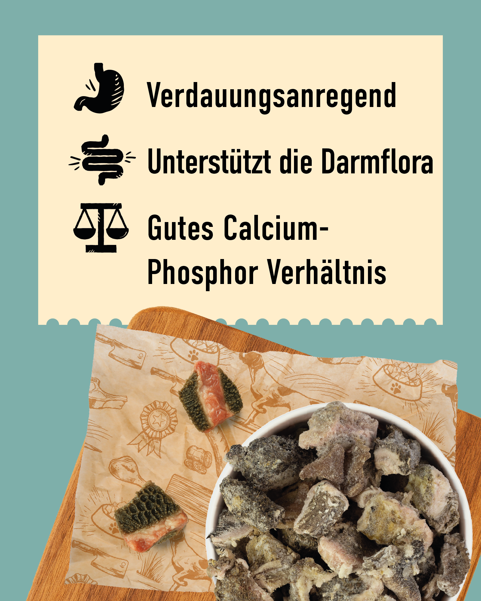 Hunde lieben Pansen besonders wegen seines kräftigen Aromas und dem vollen Geschmack.